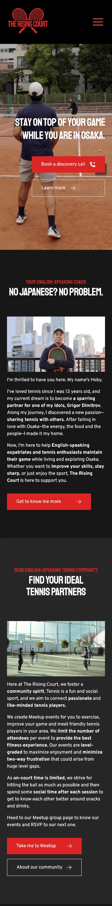 The Rising Court is a tennis coaching program based in Osaka, designed for an English-speaking community of tennis enthusiasts.
